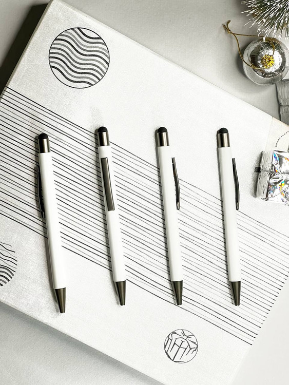خودکار بدنه جیر تاچدار سفید، با طراحی مدرن و لوکس، ظاهر شیک و حرفهای دارد. سطح نرم و لمسی بدنه، حس راحتی و خوشایند به دست میدهد و تجربه نوشتن را لذتبخش میکند. این ویژگی آن را به گزینهای ایدهآل برای هدایای تبلیغاتی و تبلیغات شیک تبدیل کرده است.
