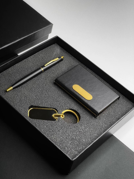 اگر به دنبال یک هدیه تبلیغاتی خاص و کاربردی هستید، ست مدیریتی ۳ تکه بهترین انتخاب است. این ست شامل خودکار رواننویس، جاکلیدی و جاکارتی چرم و فلز میباشد که در یک جعبه شیک ارائه میشود.