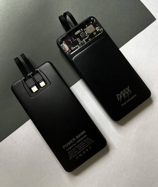 پاوربانک ۱۰ هزار میلی‌آمپر ریمکس با دو کابل چندکاره